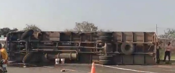 मैनपुरी। बेवर थाना क्षेत्र में कपिल मुनि आश्रम के निकट नेशनल हाईवे पर धान की भूसी से लदा कटेंनर अनियंत्रित होकर पलट गया, कटेंनर अचानक सामने से आए बचाने को बचाने के दौरान ब्रेक लगाने से अनियंत्रित हो गया था, कटेंनर के पलट जाने से हाईवे पर काफी देर तक यातायात बाधित हो गया, चालक भी कटेंनर की केविन में फंस गया, जिसे केबिन का शीशा तोड़कर बाहर निकाला गया।